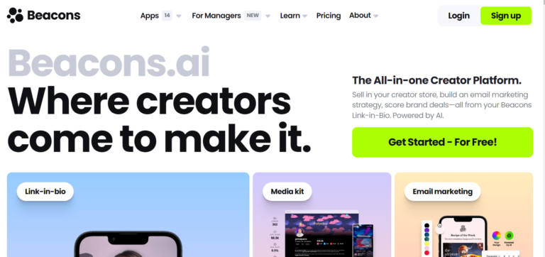 Beacons is a free platform designed for social media creators, especially on Instagram and TikTok. It offers a ‘link in bio’ feature to consolidate links,