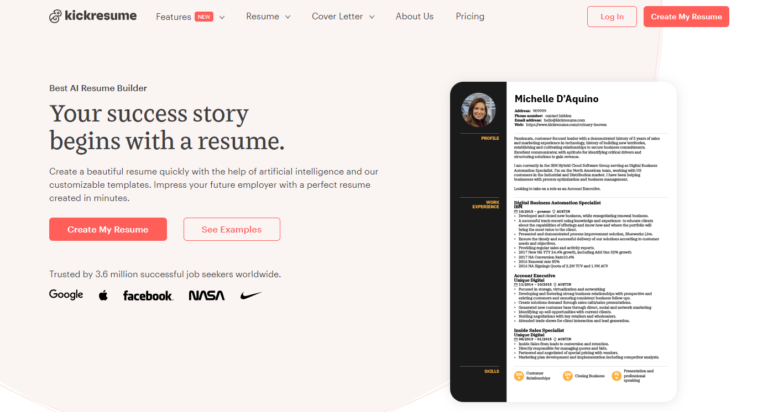 Kickresume is a popular online resume and cover letter builder utilized by over 2 million job seekers globally. It offers professional templates approved by recruiters, along with