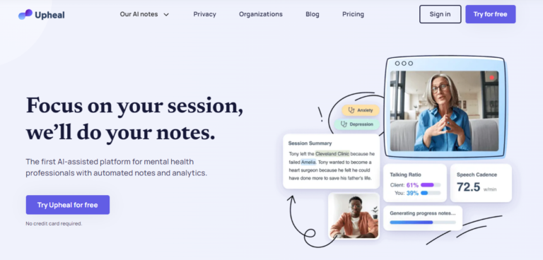 Upheal is an AI-powered progress notes tool tailored for mental health professionals, offering automated transcription of therapy notes, video calling, and analytics features. It streamlines note-taking by